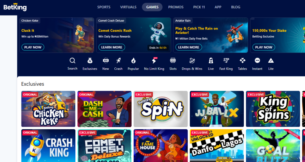 Therefore, if you’re a newbie or a seasoned player looking for a quick win with no complications, I suggest you play this one. At BetKing Casino, you will find many of these games suitable to your taste. You’ll see games like PlinkoX, Spin & Win, Keno, Smash, RollX, and more.